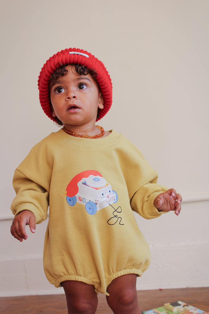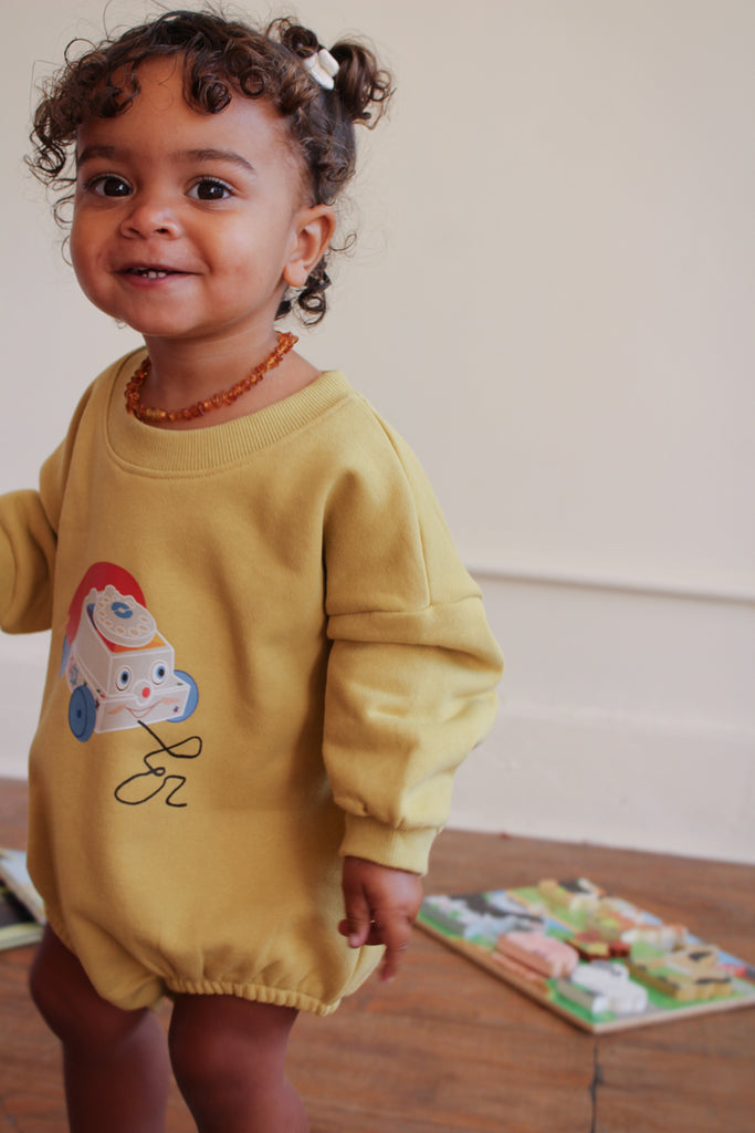 This extra-cute sweatshirt baby romper features a playful puff shape and a roomy fit.