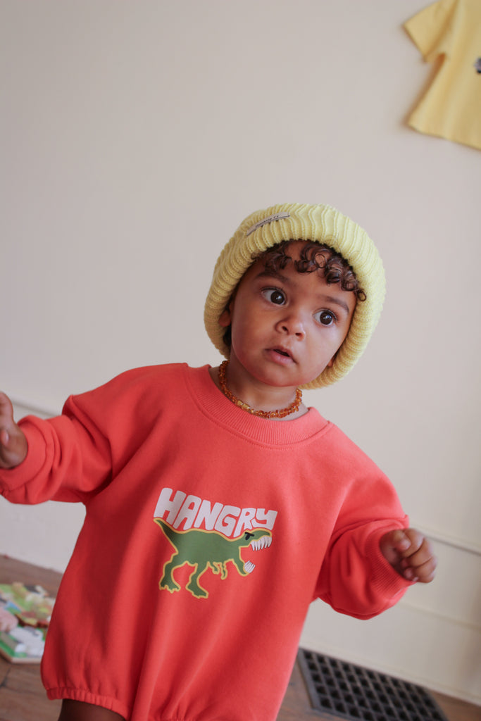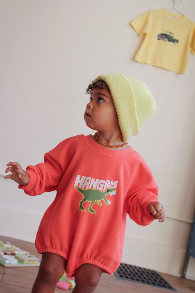 This quirky romper was designed with dino-loving kids in mind... Also, we all know a little about being hangry from time to time.