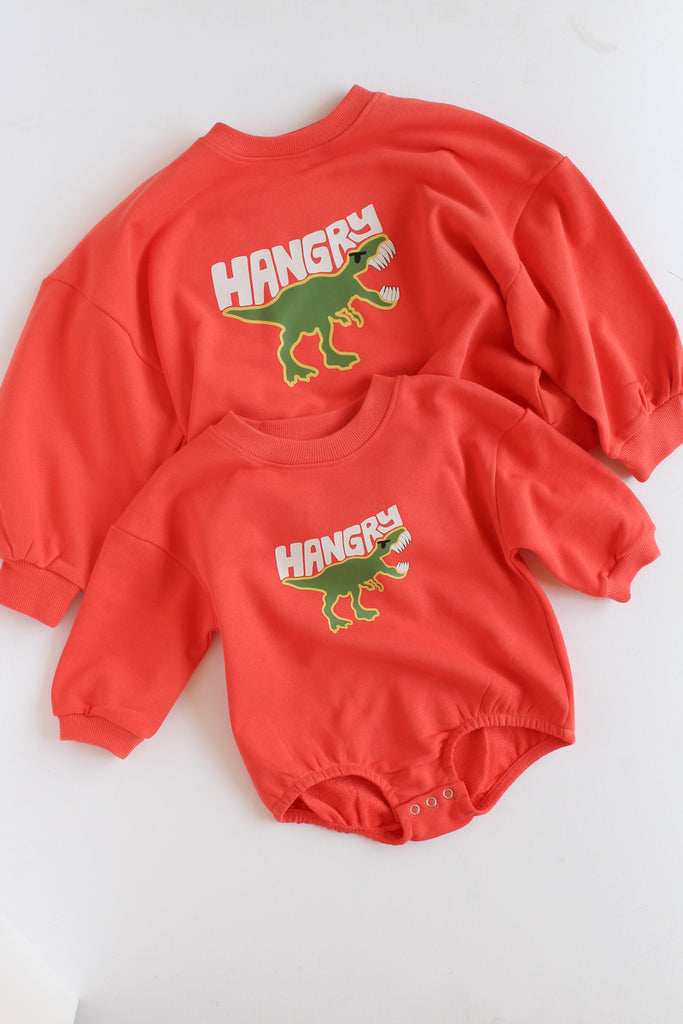 This super-cute kid's sweatshirt features a classic crew neck design and a quirky hangry dino graphic adds a fun pop of color to any look.