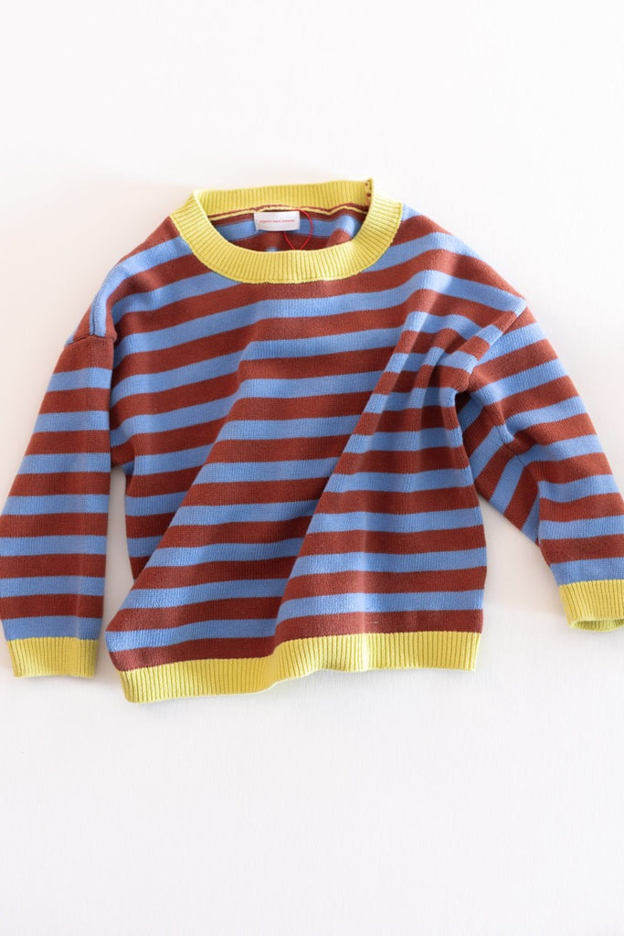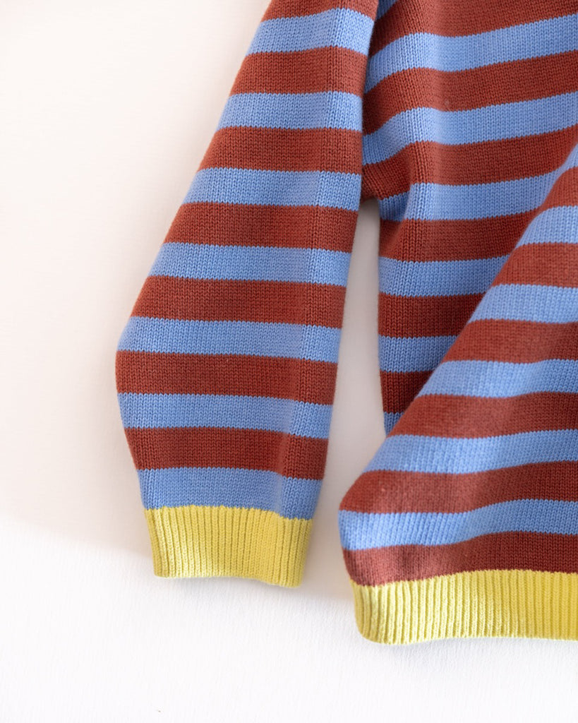 Made with 100% cotton, this pullover blends brown and blue stripes with a pop of chartreuse trim. This pullover features a soft, breathable knit that feels gentle against your little one's skin. Designed for comfort without the bulk, it's perfect for layering or wearing on its own.