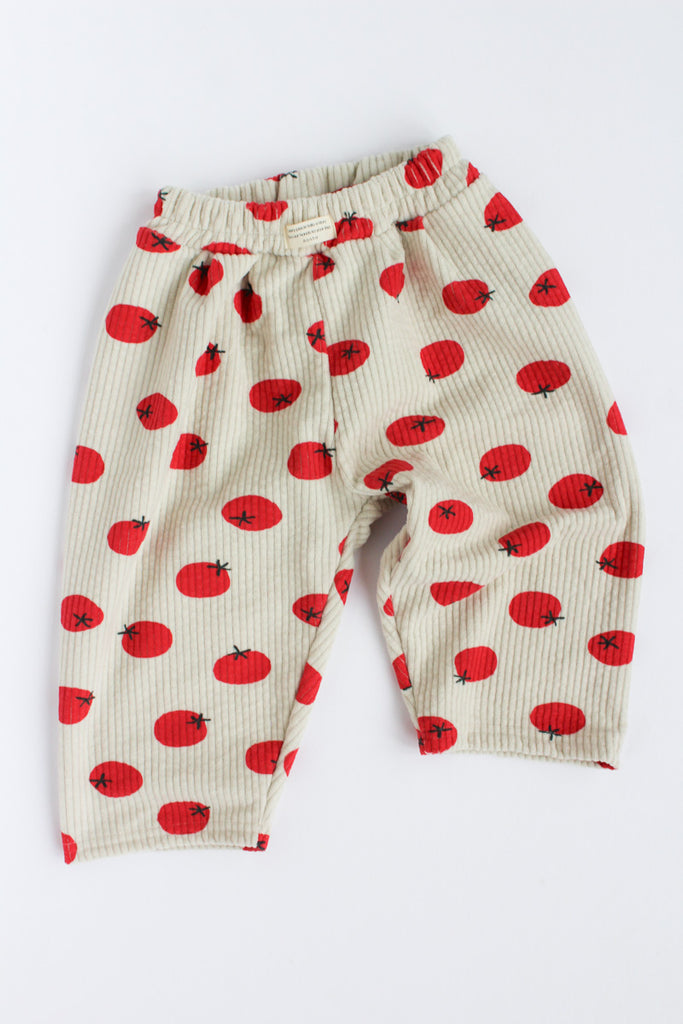 These adorable, soft tomato pants for kids are easy and effortless. With their playful pattern, they're the go-to pants for kids in any season.