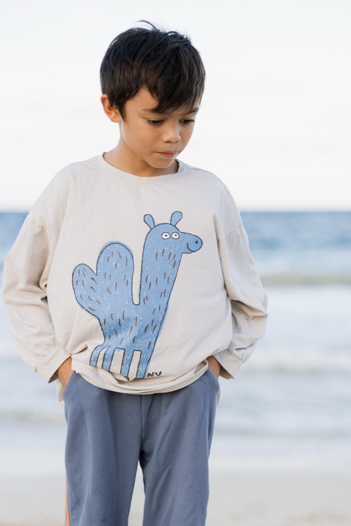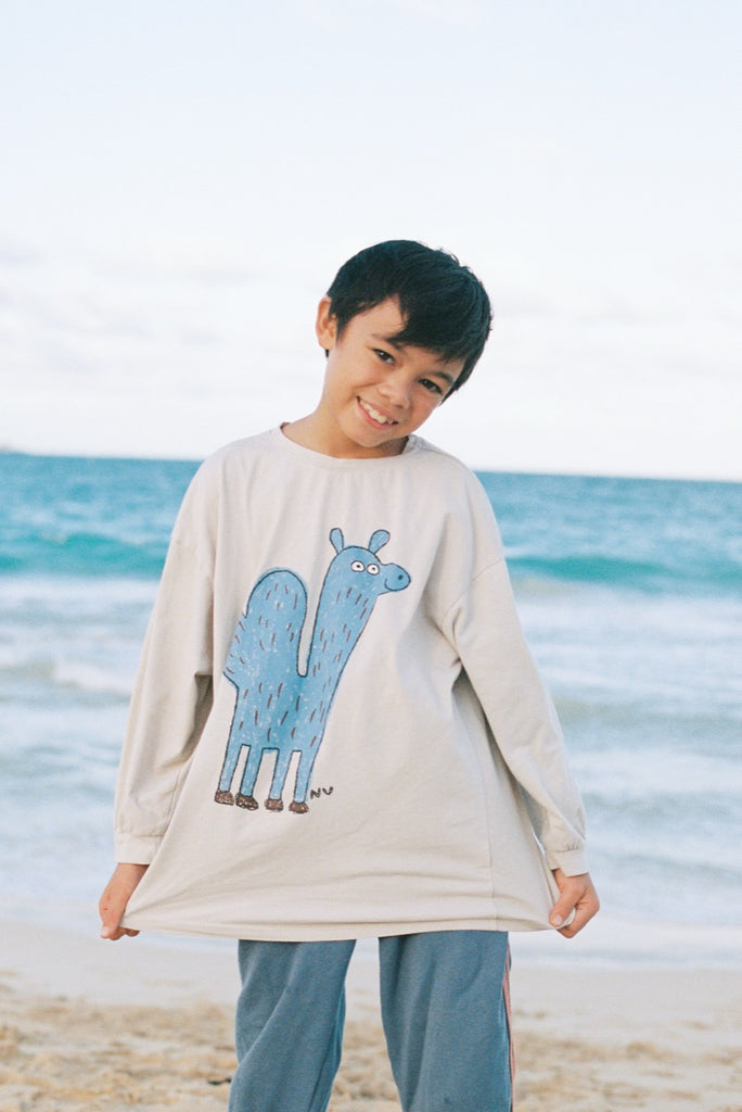 This long-sleeved tee, crafted from cozy cotton and designed with an oversized silhouette, quickly becomes a go-to. The cute blue camel graphic gives it just the right pop of fun.