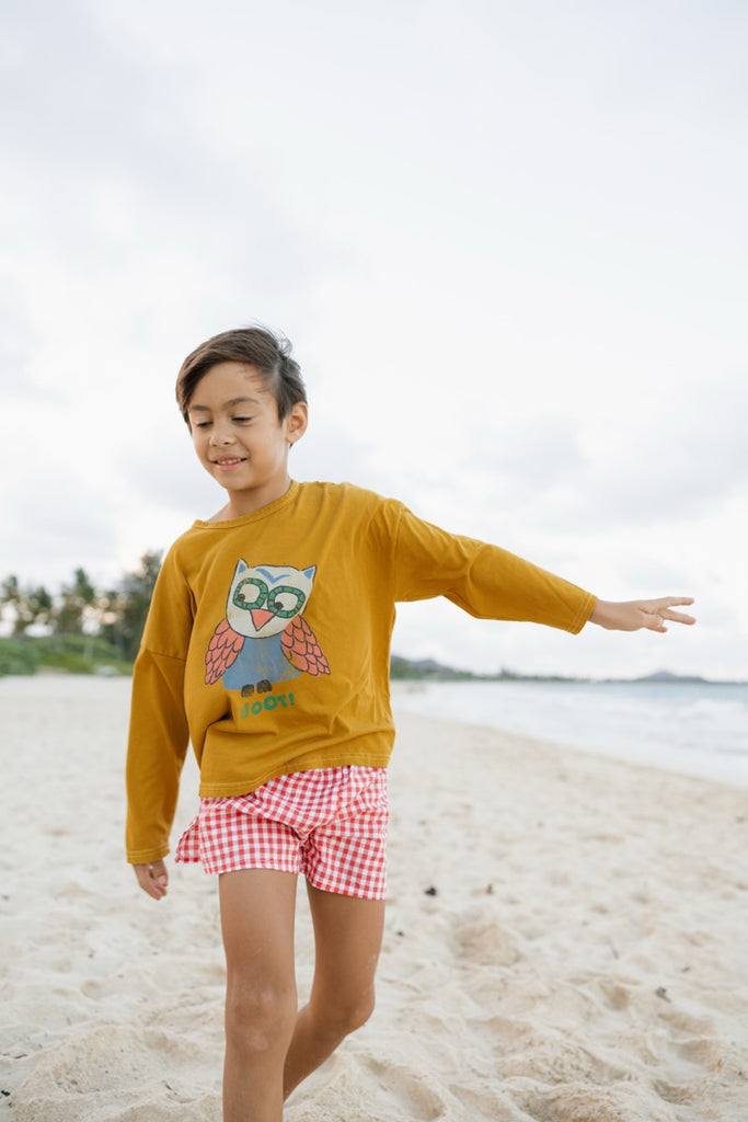 This long-sleeved tee, crafted from soft cotton and designed with an oversized silhouette, quickly becomes a go-to. The cute wise owl gives it just the right pop of fun.