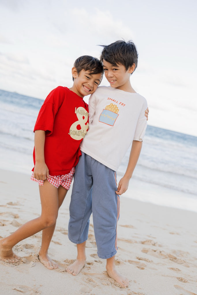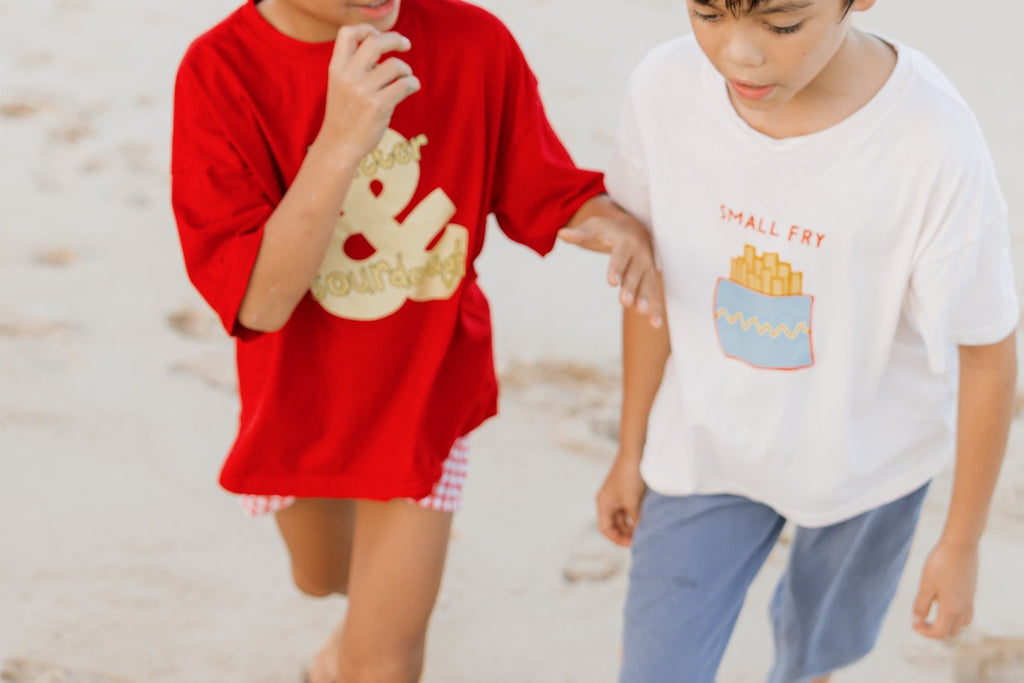 This extra-cute kids' tee features our favorite sourdough bread and butter combo on a super-soft, pop of red, cotton tee.
