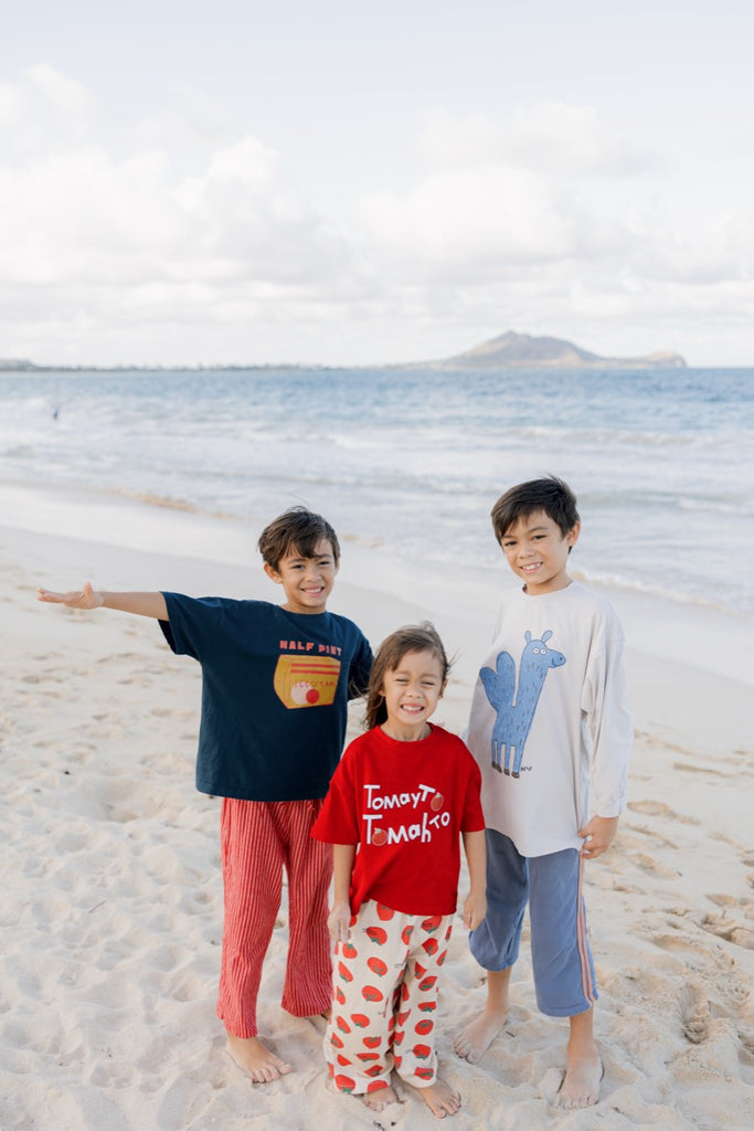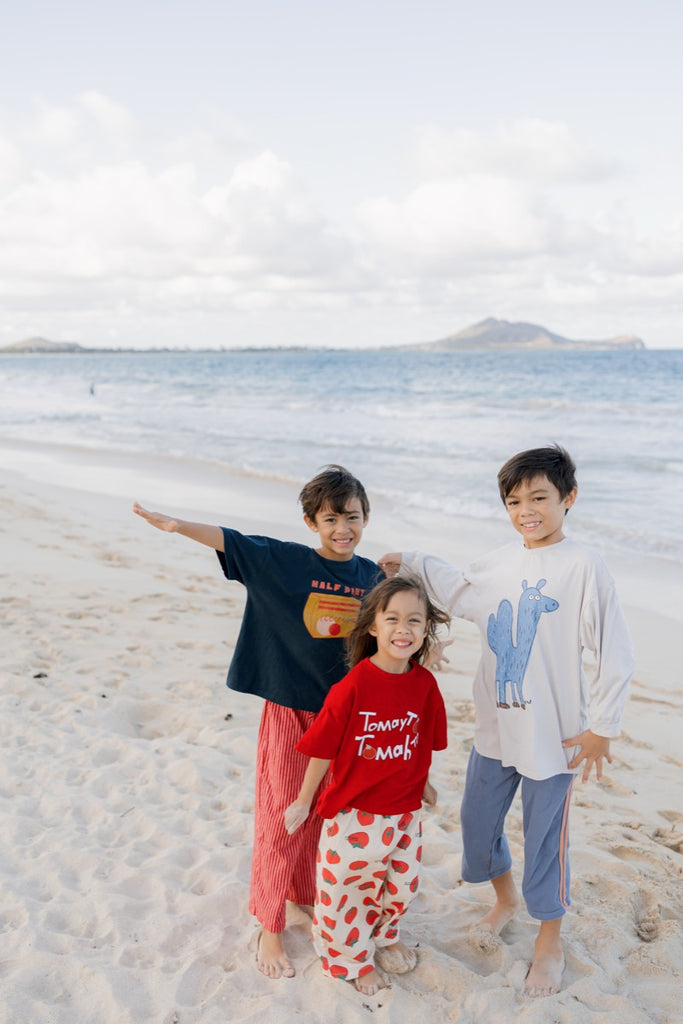 This extra-cute kids' tee features "tomayto tomahto" on a super-soft, pop of red, cotton tee.