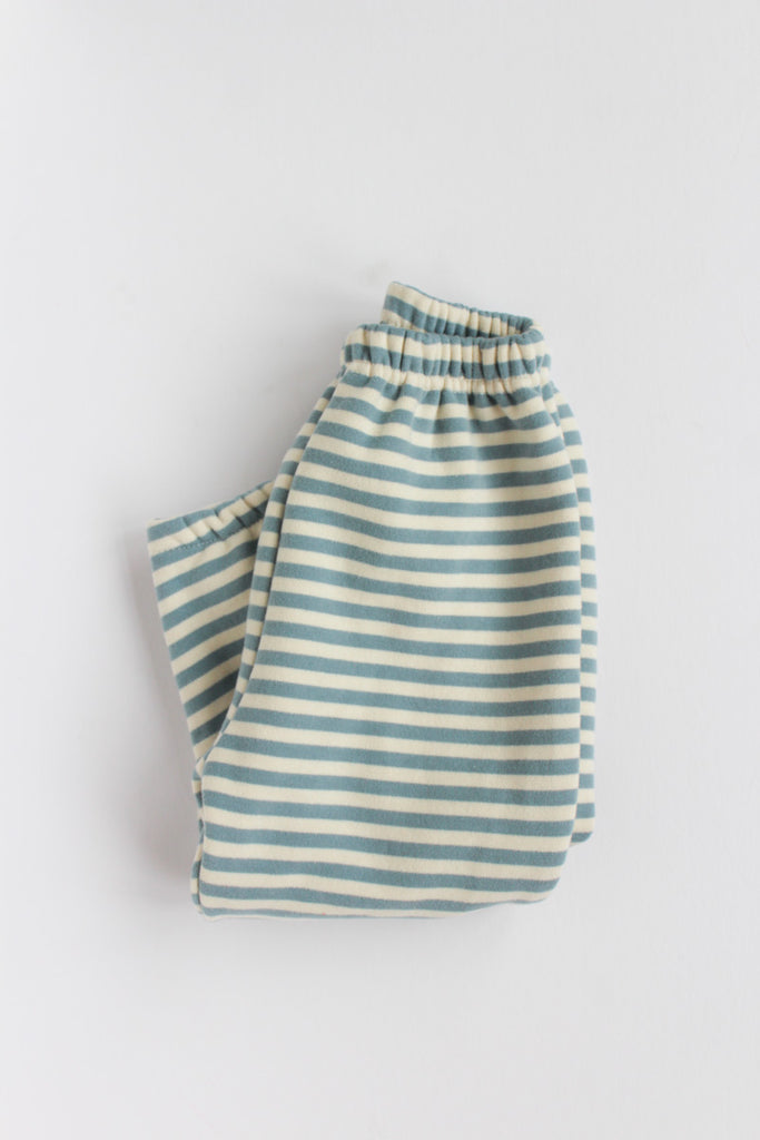 These adorable, soft blue striped pants for kids are easy and effortless. With their playful stripes, they're the go-to pants for kids in any season.